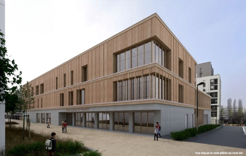 Construit en bois et matériaux biosourcés, avec une toiture végétalisée, il disposera également de deux cours “Oasis” végétalisées de 600 m² chacune, favorisant le confort des enfants et la fraîcheur en été.
